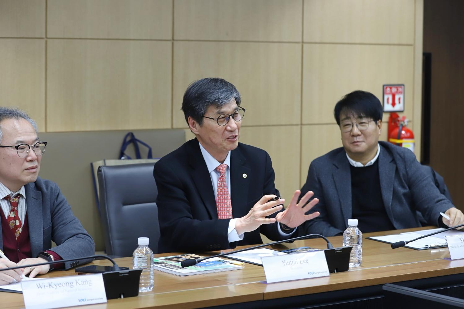 Meetings were held with University President Dr. Lee Yun-jae, Prof. Yongtae Shin (Dean of the IT Graduate School), and Prof. Wee Kyung Kang (Dean of the Natural Sciences College).