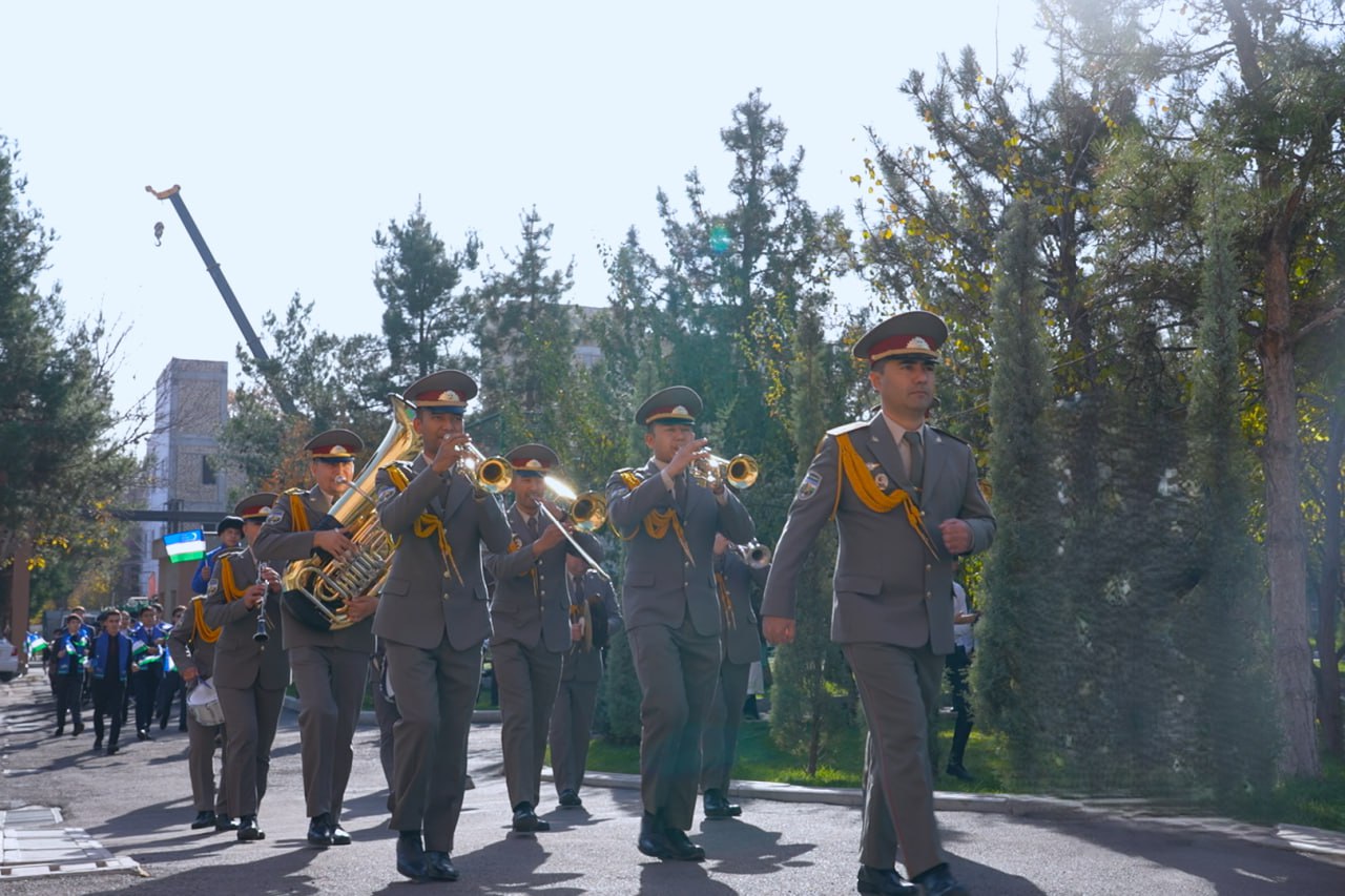 The National Guard of Uzbekistan showcased a ceremonial appearance of the mounted unit along with a performance by the military orchestra.