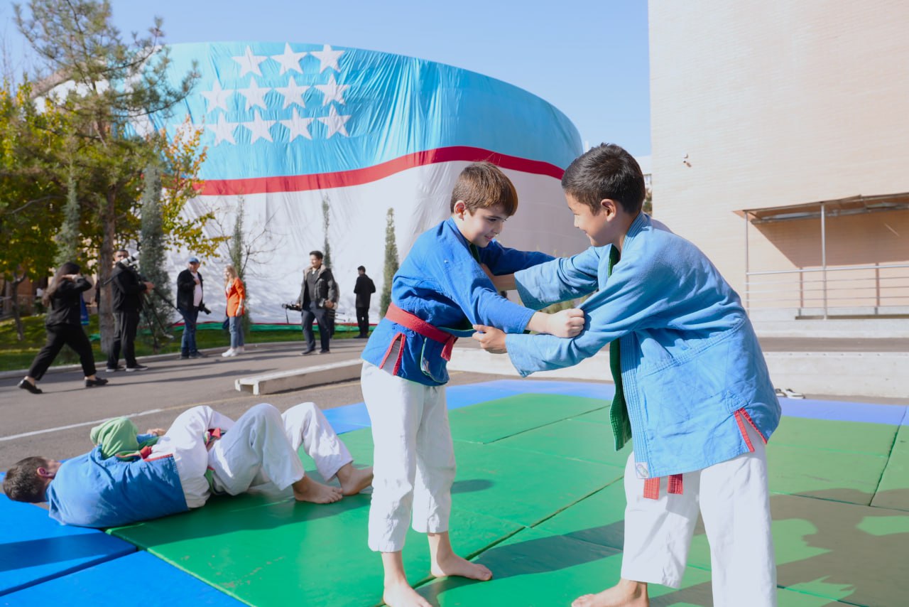 The EthnoSport Association delivered impressive demonstrations of traditional Uzbek sports — qarabtep, national wrestling, archery, and Uzbek martial arts.